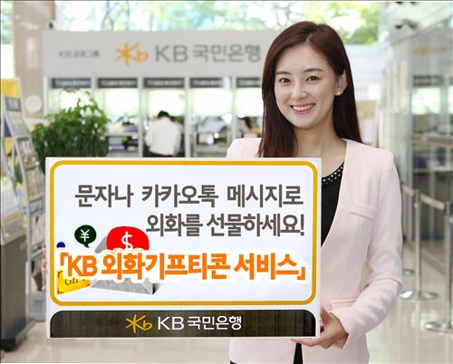 (서울=연합뉴스) 송광호 기자 = KB국민은행은 친구나 지인의 결혼, 졸업 등 특별한 날에 간편하게 외화를 선물할 수 있는 'KB 외화기프티콘 서비스'를 17일 시작했다고 밝혔다.
