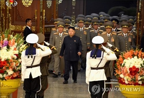 | △ 광복 70주년 맞아 금수산태양궁전 참배하는 북한 김정은 국방위 제1위원장(연합뉴스 자료사진) |