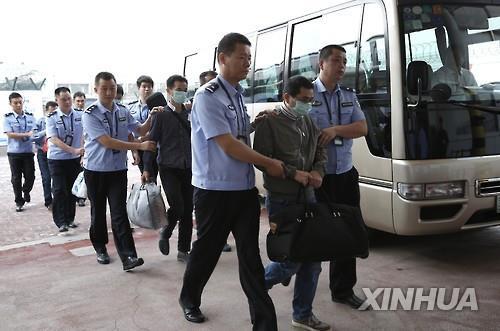 | △ 외국으로 도피했던 탈주자들이 지난 6월 중국으로 송환되는 모습(자료사진) |