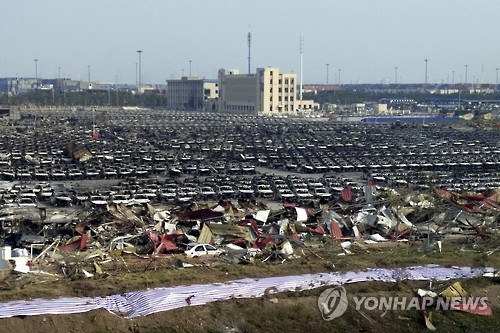 | △ 지난 12일 중국 톈진(天津)에서 발생한 대형 폭발사고로 수출용 차량 수천 대가 불에 탔다. (AP=연합뉴스 자료사진) |