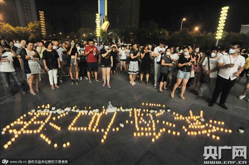 中 톈진 폭발사고 희생자 '추모물결'…TV 오락프로그램 중단
