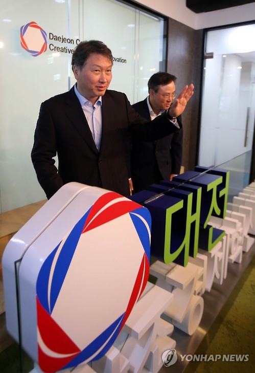 (서울=연합뉴스) 고웅석 기자 = 최태원 SK그룹 회장은 18일 SK그룹이 후원하는 대전과 세종 창조경제혁신센터를 차례로 방문하며 현장 경영의 시동을 걸었다.