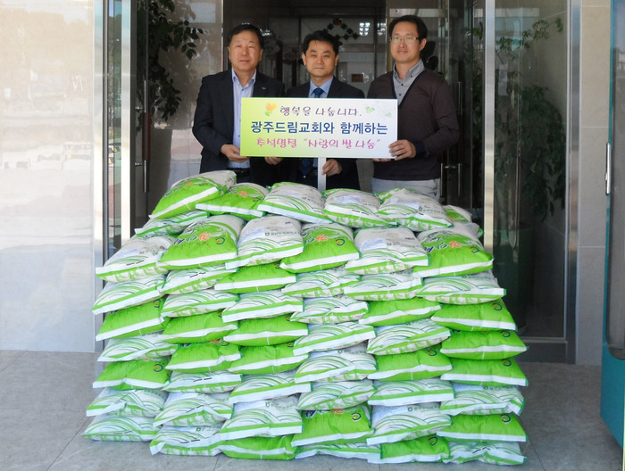 | △ 광주드림교회가 월곡1동주민센터에 쌀 10㎏ 100포를 전달 |
