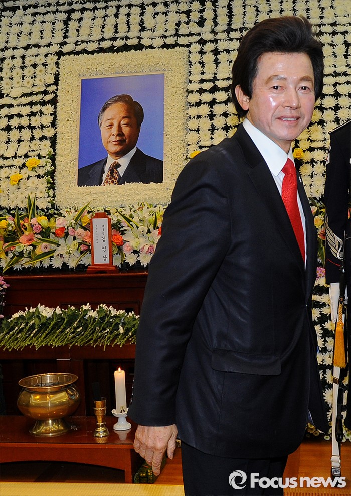 (서울=포커스뉴스) 허경영 민주공화당 총재가 25일 오후 서울대병원 장례식장에 마련된 고 김영삼 전 대통령 빈소를 찾아 조문한 뒤 퇴장하고 있다.