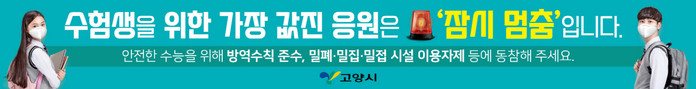 [부자동네타임즈 김인수기자] 고양시가 11월 18일 2022년도 수능을 앞두고 방역수칙 준수 동참을 촉구하는 대시민 호소문을 발표했다.
