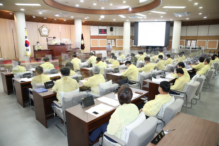이번 임시회는 코로나19에 따른 사회적 거리두기가 1단계로 완화되었지만, 수도권 진정세가 더딤에 따라 사회적 거리두기 2단계 조치 일부 유지로 본회의 현장 방청을 제한하고 필수 인원에 한하여 참석 가능하도록 조치했다. 또한 마이크 덮개‧비말차단용 칸막이 설치 등 방역조치를 강화해 회기를 운영한다.