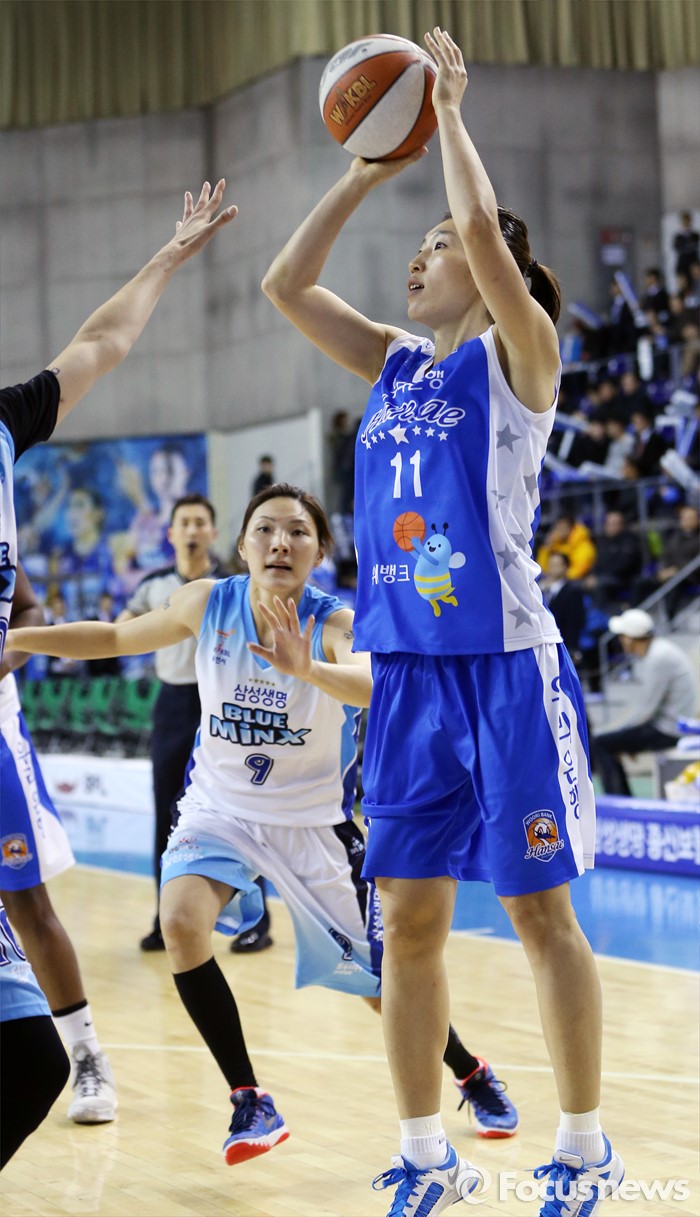 우리은행은 최근 득점력이 살아나 팀 공격을 주도하고 있는 임영희가 20득점으로 또 힘을 냈다. 박혜진과 굿렛이 각각 14득점과 12득점을 기록하며 공격을 분산했다. 특히 우리은행은 30-21로 앞선 채 맞은 3쿼터 임영희와 박혜진의 3점포까지 터지며 점수차는 더 벌어졌다. 우리은행은 3쿼터에만 25득점을 올린 반면 삼성생명은 7득점에 그쳤다. 4쿼터가 무의미했다.(용인=포커스뉴스) 17일 용인실내체육관에서 열린 2015-2016 여자프로농구 삼성생명-우리은행 경기에서 우리은행 임영희가 삼성생명 최희진을 제치고 미들슛을 쏘고 있다. 2015.12.17 우정식 기자