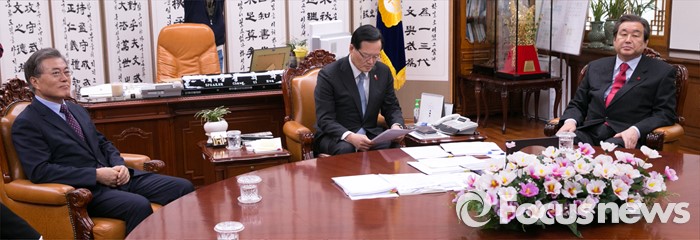 문재인 대표는 "뭐 그렇게 진전이 없었고, 일요일(27일)날 다시 한 번 더 모여서 마지막으로 논의하기로 했다"고 밝혔다.