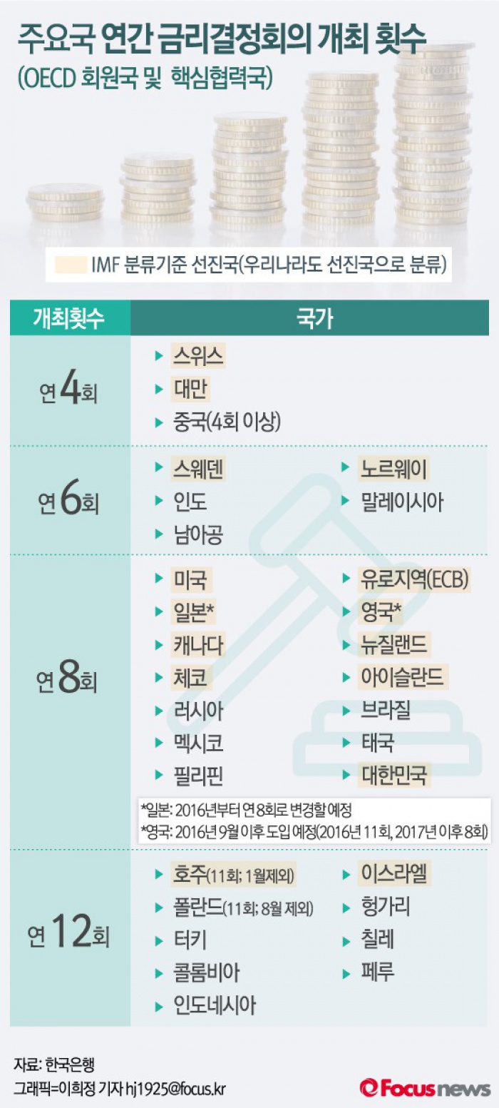 | △ [그래픽] 주요국 연간 금리결정회의 개최 횟수 |