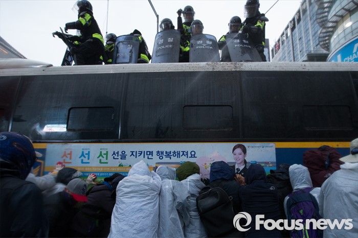(서울=포커스뉴스) 서울 광진경찰서는 지난달 14일 열린 1차 민중총궐기 당시 경찰버스에 불을 지르려 한 혐의(일반교통방해 및 특수공무집행방해, 현존자동차방화 미수)로 화물연대 구미지회장 이모(46)씨를 구속했다고 30일 밝혔다.