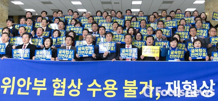 (서울=포커스뉴스) 더불어민주당이 '한‧일 외교장관의 위안부 합의'를 비판하며 박근혜 대통령의 사죄와 윤병세 외교부장관의 사퇴를 촉구했다.