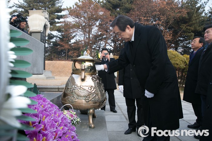 (서울=포커스뉴스) 병신년(丙申年) 새해 첫 날인 1일 오전 동작구 국립서울현충원에서 김무성 새누리당 대표 등 지도부가 이승만 전 대통령 묘역 참배를 하고 있다.