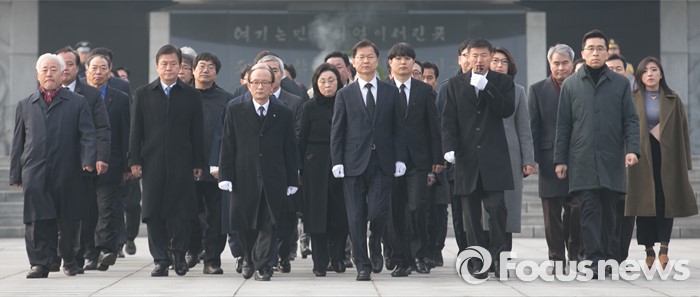 (서울=포커스뉴스) 병신년(丙申年) 새해 첫 날인 1일 오전 동작구 국립서울현충원에서 천정배 국민회의 창당추진위원장이 현충탑 참배를 마친 뒤 이동하고 있다.