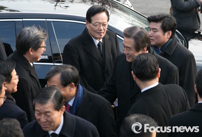 (서울=포커스뉴스) 병신년(丙申年) 새해 첫 날인 1일 오전 동작구 국립서울현충원에서 정의화 국회의장이 이승만 전 대통령 묘역 참배를 마친 뒤 참배를 위해 이동하는 김무성 새누리당 대표 등 의원들과 인사하고 있다.