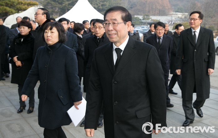 (서울=포커스뉴스) 병신년(丙申年) 새해 첫 날인 1일 오전 동작구 국립서울현충원에서 박원순 서울시장이 현충탑 참배를 위해 이동하고 있다.