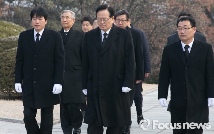 (서울=포커스뉴스) 병신년(丙申年) 새해 첫 날인 1일 오전 동작구 국립서울현충원에서 정의화 국회의장이 이승만 전 대통령 묘역 참배를 위해 이동하고 있다.