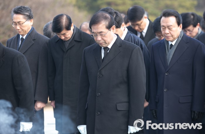 (서울=포커스뉴스) 병신년(丙申年) 새해 첫 날인 1일 오전 동작구 국립서울현충원에서 박원순 서울시장이 현충탑 참배를 하고 있다.