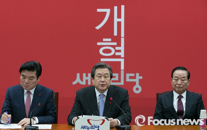 그는 이어 "이 법안을 먼저 임시국회에 처리하고, 선거구 획정을 하는 것이 맞지 않겠는가"라며 "20대 총선에서 우리가 똘똘 뭉쳐서 하나로 된다면, 국민들은 저희들에게 대한민국을 개혁하고, 대한민국을 발전시킬 그러한 일할 기회를 주실 것이라고 확신한다"고 했다.김무성(가운데) 새누리당 대표가 28일 오전 서울 여의도 국회에서 열린 최고위원회의에 참석해 모두발언하고 있다. 2015.12.28 박철중 기자