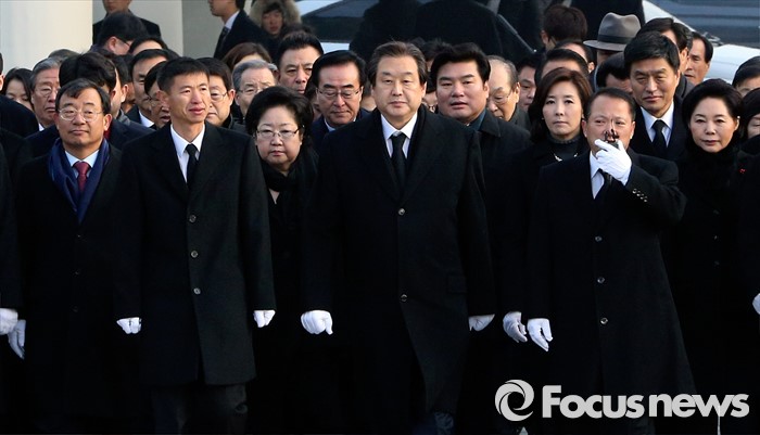 (서울=포커스뉴스) 병신년(丙申年) 새해 첫 날인 1일 오전 동작구 국립서울현충원에서 김무성 새누리당 대표 등 의원들이 현충탑 참배를 위해 이동하고 있다.