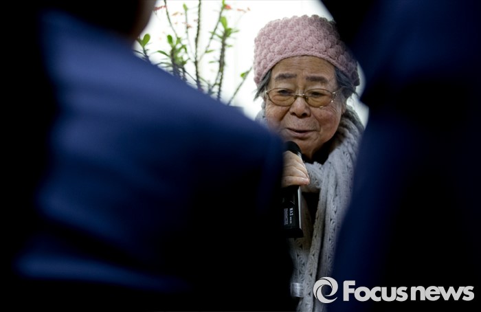 (광주=포커스뉴스) 병신년(丙申年) 새해 첫 날인 1일 오후 유희남 할머니가 경기도 광주 일본군 위안부 피해자 쉼터 나눔의 집을 방문한 원유철 새누리당 원내대표 등 의원들과의 간담회에서 발언하고 있다.