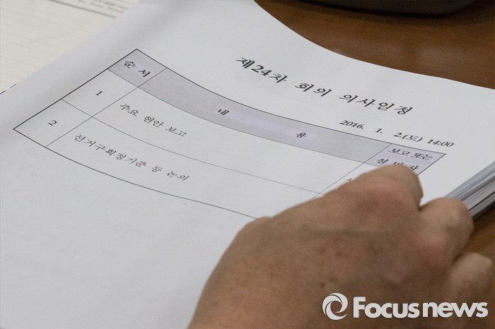 (서울=포커스뉴스) 김대년 국회의원선거구획정위원회 위원장이 2일 오후 서울 관악구 중앙선거관리위원회 관악청사에서 열린 선거구 획정위원회 전체회의에 참석해 회의 일정을 보고 있다.