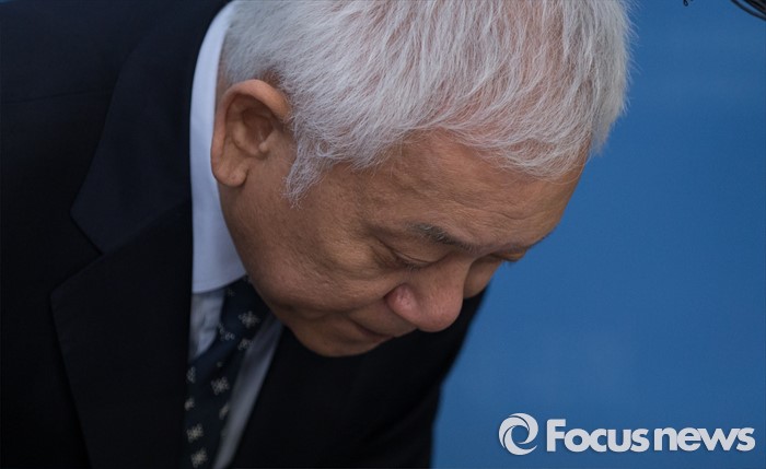 (서울=포커스뉴스) 김한길 더불어민주당 전 공동대표가 3일 오전 서울 여의도 국회 정론관에서 탈당 선언 기자회견을 마치고 인사하고 있다.