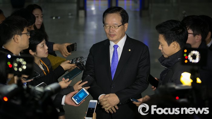 (서울=포커스뉴스) 정의화 국회의장이 4일 오전 서울 여의도 국회로 출근하며 취재진 질문에 답하고 있다. 중앙선관위 산하 선거구획정위는 지난 2일 정 의장이 제시한 선거구 획정기준에 대해 전체회의를 열고 논의했지만 합의도출에 실패했다.