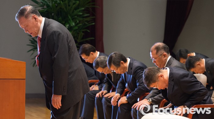 (서울=포커스뉴스) 4일 오전 서울 서초구 현대자동차 본사 대강당에서 열린 2016년도 시무식에 참석한 정몽구 현대차그룹 회장(맨 왼쪽)을 비롯한 임직원들이 신년 인사를 하고 있다.