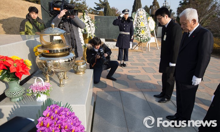 (서울=포커스뉴스) 김한길 무소속 의원이 4일 오전 서울 동작구 국립서울현충원 故 김대중 전 대통령 묘역을 찾아 참배를 하고 있다.