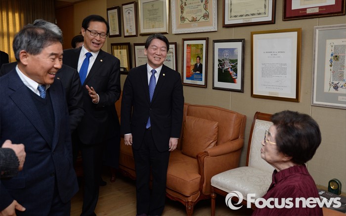 (서울=포커스뉴스) 신당 창당을 추진중인 무소속 안철수 의원과 문병호 의원 등이 4일 서울 동교동 고 김대중 전 대통령의 사저를 찾아 이희호 여사를 예방하고 새해 인사를 하고 있다.