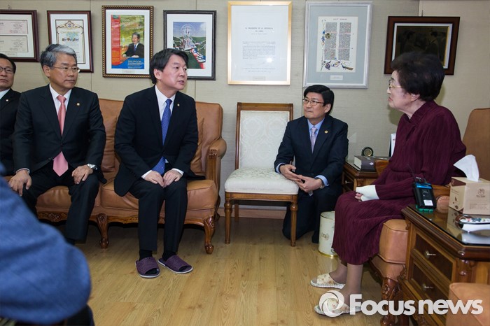 (서울=포커스뉴스) 신당을 추진 중인 안철수 무소속 의원이 4일 서울 동교동 고 김대중 전 대통령 사저를 찾아 이희호 여사를 예방하고 있다.