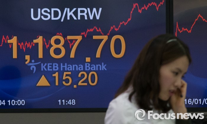 정경팔 하나선물 시장분석팀장은 "앞으로 원화가치는 본격적인 하락세를 보일 가능성이 높다"며 "이는 글로벌 위험회피 심리가 강화되는데 따른 것으로 풀이된다"고 설명했다.(서울=포커스뉴스) 새해 첫 거래일인 4일 원·달러 환율이 중국 증시 폭락 여파로 15.2원 급등한 1187.7원에 장을 마쳤다. 이날 서울 중구 을지로 KEB하나은행에서 딜러들이 업무를 보고 있다. 2016.01.04 김인철 기자 4일 외환시장 <그래픽 출처=네이버 캡처>