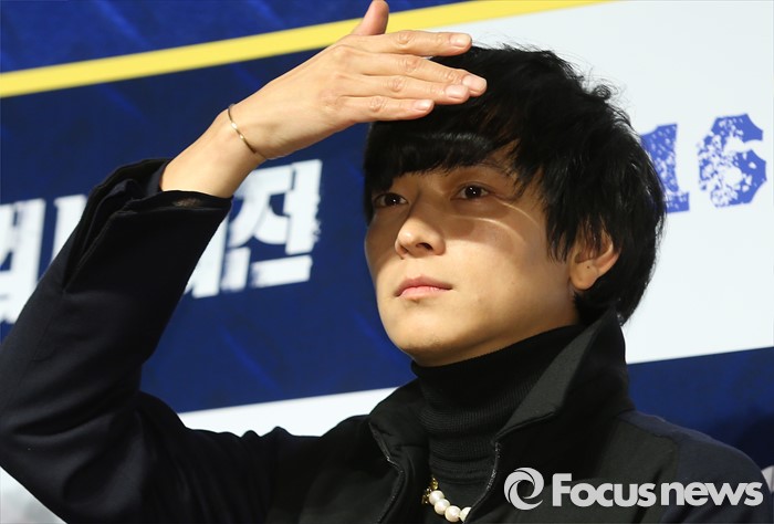 (서울=포커스뉴스) 4일 오후 서울 강남구 압구정 CGV에서 열린 영화 '검사외전' 제작보고회에 참석한 배우 강동원이 취재진에게 질문을 받고 있다.