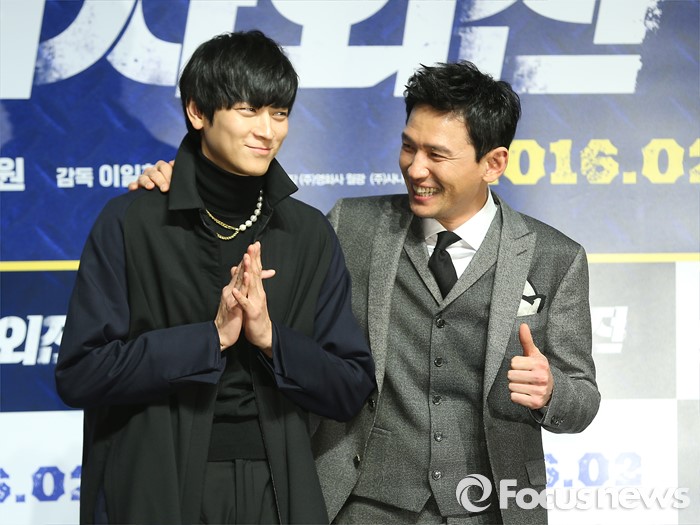 한국영화에서 처음 황정민과 강동원이 만났다. 두 사람의 활약을 담은 영화 '검사외전'은 다음달 4일 개봉한다.<서울=포커스뉴스> 배우 강동원(왼쪽)과 황정민이 4일 서울 강남구 압구정 CGV에서 열린 영화 '검사외전' 제작보고회에서 포토타임을 갖고 있다. 김유근 기자 배우 황정민(왼쪽)과 강동원이 영화 '검사외전'에서 각각 재욱과 치원 역을 맡아 열연했다. 사진은 '검사외전' 스틸컷. <사진제공=쇼박스><서울=포커스뉴스> 배우 강동원, 이일형 감독, 황정민(왼쪽부터)이 4일 서울 강남구 압구정 CGV에서 열린 영화 '검사외전' 제작보고회에서 포즈를 취하고 있다. 김유근 기자