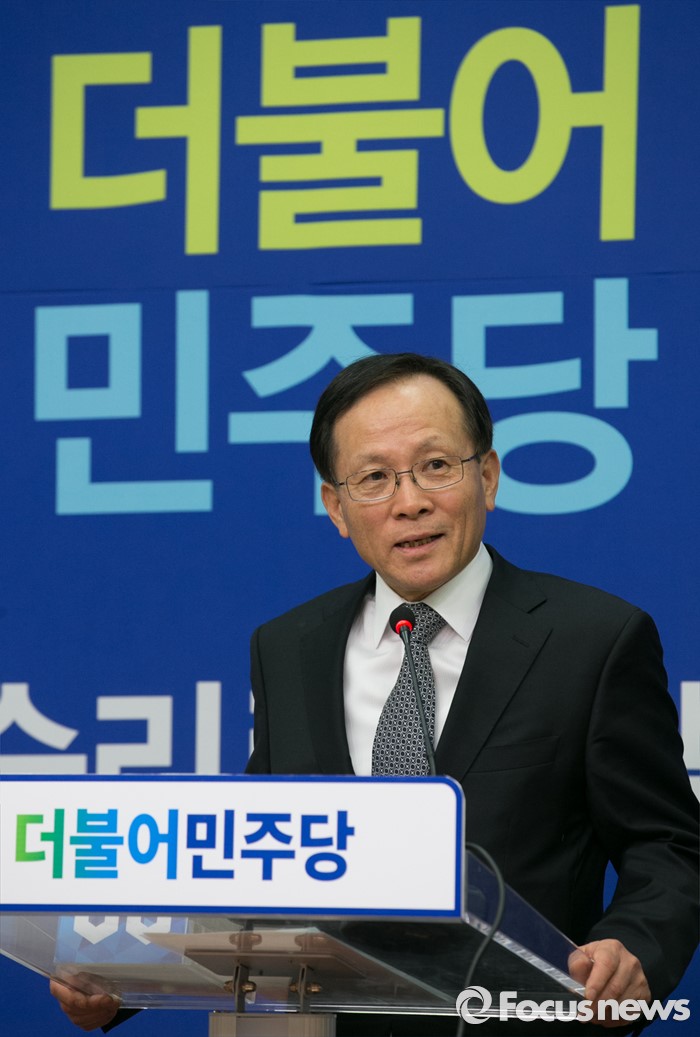 (서울=포커스뉴스) 이수혁 전 6자회담 수석대표가 5일 오전 서울 여의도 국회에서 열린 더불어민주당 입당식에 참석해 인사말을 하고 있다.