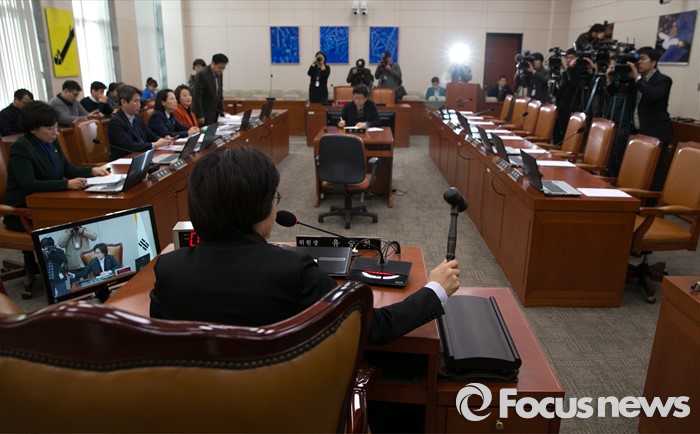 (서울=포커스뉴스) 5일 오전 서울 여의도 국회에서 열린 여성가족위원회 전체회의에 참석한 유승희 위원장이 산회를 선포하고 있다. 이날 여가위는 한일 위안부 합의와 관련 여성가족부의 현안보고를 들으려 했으나, 여야 간사간 협의가 이루어지지 않은 점을 들어 여당 의원과 김희정 장관은 참석하지 않았다.