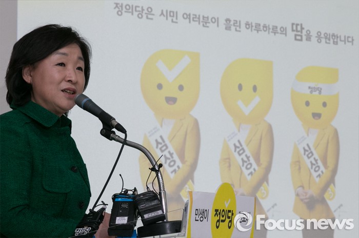 (서울=포커스뉴스) 5일 오전 서울 여의도 국회에서 열린 정의당 20대 총선 기조, 캐치프레이즈, CI, 전략 캠페인 공개 시연회에 참석한 심상정 상임대표가 설명을 하고 있다.
