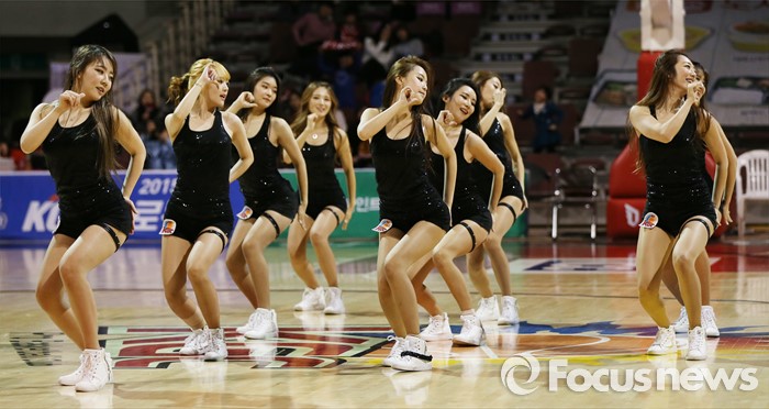 (안양=포커스뉴스) 5일 안양실내체육관에서 열린 2015-2016 프로농구 KGC-전자랜드 경기에서 KGC 치어리더가 섹시한 춤으로 경기장의 열기를 북돋우고 있다.