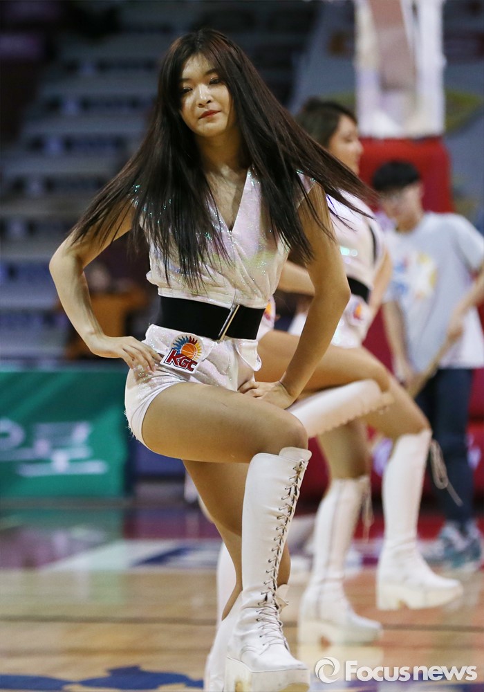 (안양=포커스뉴스) 5일 안양실내체육관에서 열린 2015-2016 프로농구 KGC-전자랜드 경기에서 KGC 치어리더가 섹시한 춤으로 경기장의 열기를 북돋우고 있다.
