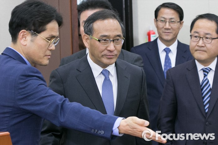 (서울=포커스뉴스) 홍윤식(왼쪽 두번째) 행정자치부 장관 후보자가 6일 오전 서울 여의도 국회에서 열린 인사청문회에 출석하고 있다.