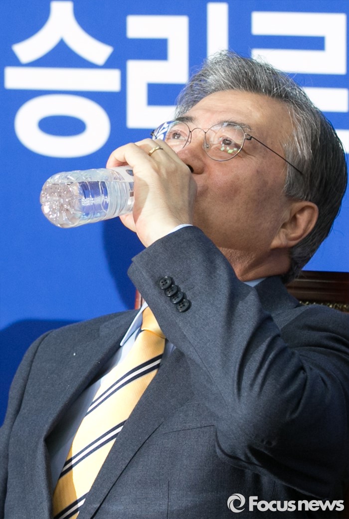 (서울=포커스뉴스) 문재인 더불어민주당 대표가 6일 오전 서울 여의도 국회에서 열린 최고위원회의에 참석해 물을 마시고 있다.