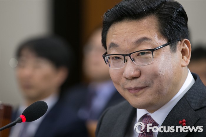 (서울=포커스뉴스) 주형환 산업통상자원부 장관 후보자가 6일 오전 서울 여의도 국회에서 열린 인사청문회에 참석해 미소 짓고 있다.