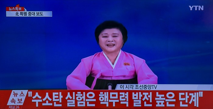 (서울=포커스뉴스) 북한은 6일 오후 조선중앙TV를 통해 오전 10시 첫 수소탄 실험에 성공했다고 밝혔다. (화면캡쳐=YTN)