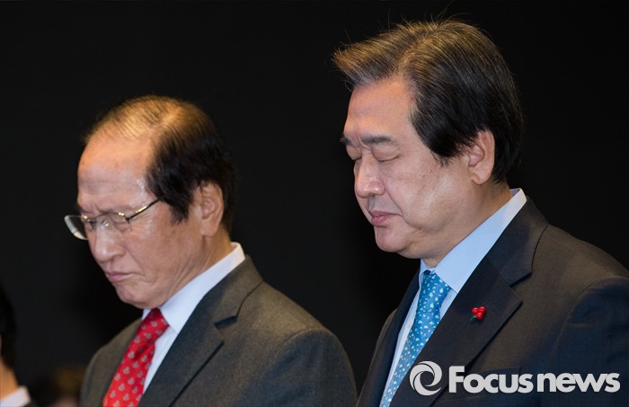 (서울=포커스뉴스) 김무성(오른쪽) 새누리당 대표와 신경식 대한민국헌정회 회장이 6일 오전 서울 영등포구 글래드호텔에서 열린 대한민국헌정회 신년인사모임에 참석해 묵념하고 있다.