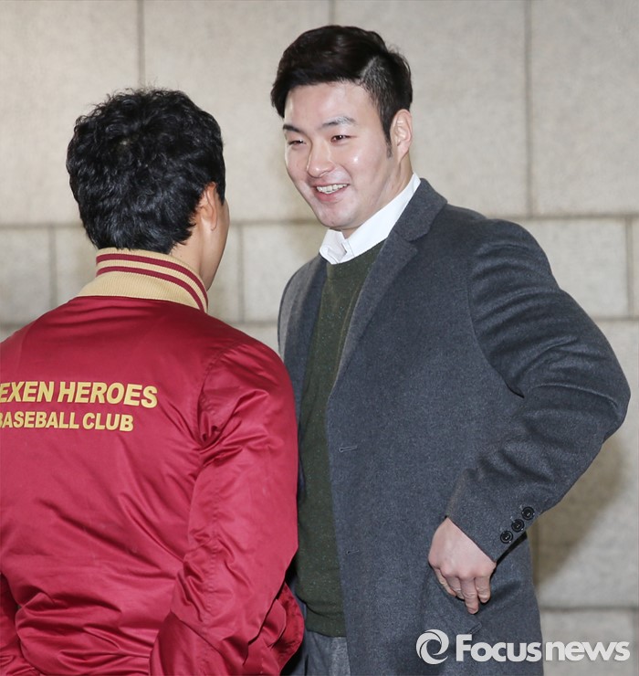 (서울=포커스뉴스) 미국 메이저리그 미네소타 트윈스로 짐출한 박병호가 6일 목동구장에서 열린 프로야구 2016 넥센 히어로즈 시무식에 참석해 선수들과 작별의 인사를 나누고 있다.