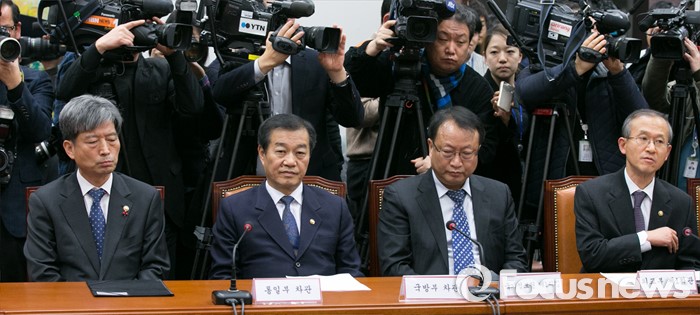 (서울=포커스뉴스) 6일 오후 서울 여의도 국회 새누리당 대표최고위원실에서 열린 북한 핵실험 관련 긴급대책회의에 정부 외교안보 관계부처 차관들이 참석해 있다. 왼쪽부터 황부기 통일부 차관, 황인무 국방부 차관, 한기범 국정원 1차장, 임성남 외교부 1차관.