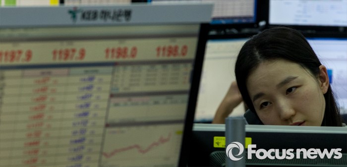 (서울=포커스뉴스) 코스피 지수가 전거래일 보다 5.10포인트(0.26%) 하락한 1,925.43에 거래를 마치며, 북한의 수소탄 실험에도 1920선을 지킨 6일 오후 서울 중구 KEB하나은행 본점 딜링룸에서 딜러들이 업무를 보고 있다. 이날 원달러 환율은 전거래일 보다 9.9원 오른 1197.9원에 마감하며, 지난해 9월 1200.9원 이후 4개월 만에 최고치를 기록 했다.
