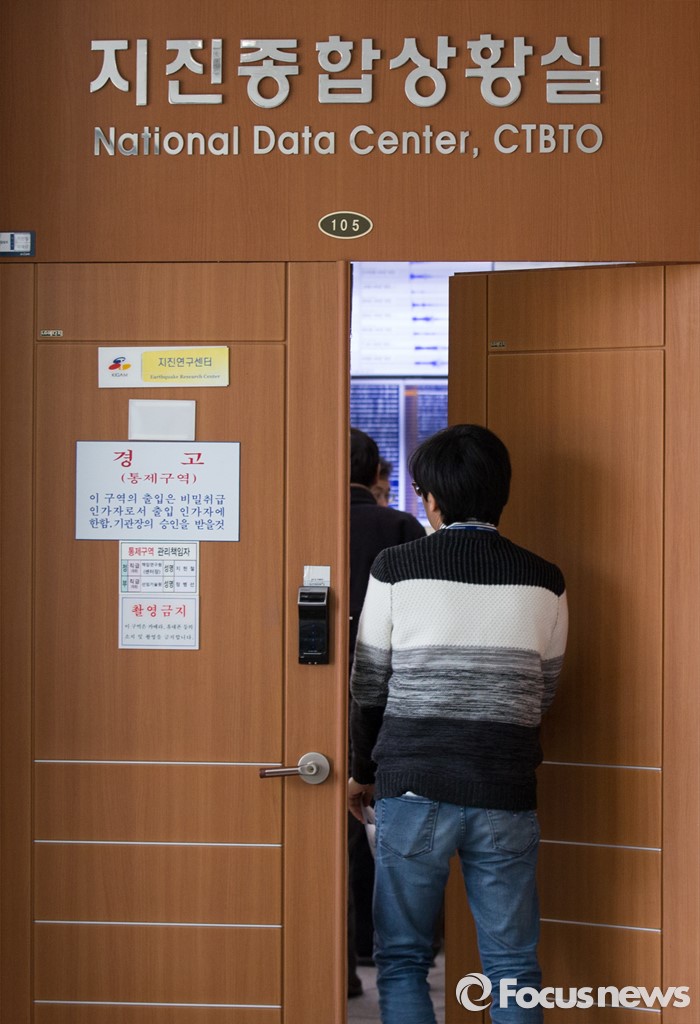 (대전=포커스뉴스) 북한이 수소탄 핵실험을 성공했다고 발표한 가운데 6일 오후 대전 유성구 한국지질자원연구원 지진연구센터 종합상황실에서 관계자들이 분주한 모습을 보이고 있다.