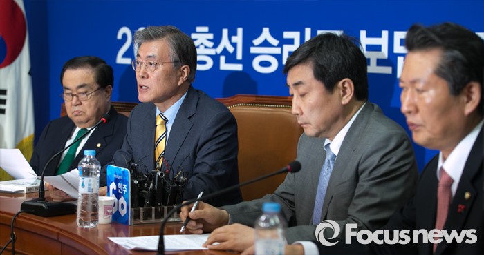 (서울=포커스뉴스) 6일 오후 서울 여의도 국회에서 북한 핵실험 관련 긴급 더불어민주당 최고위원 연석회의에 참석한 문재인 대표가 모두발언하고 있다.