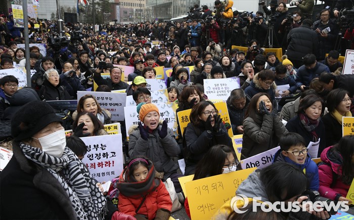 (서울=포커스뉴스) 일본군 위안부 문제 해결을 위한 정기 수요집회 24주년인 6일 오후 서울 종로구 주한일본대사관 앞에서 제1212차 수요집회가 열리고 있다.